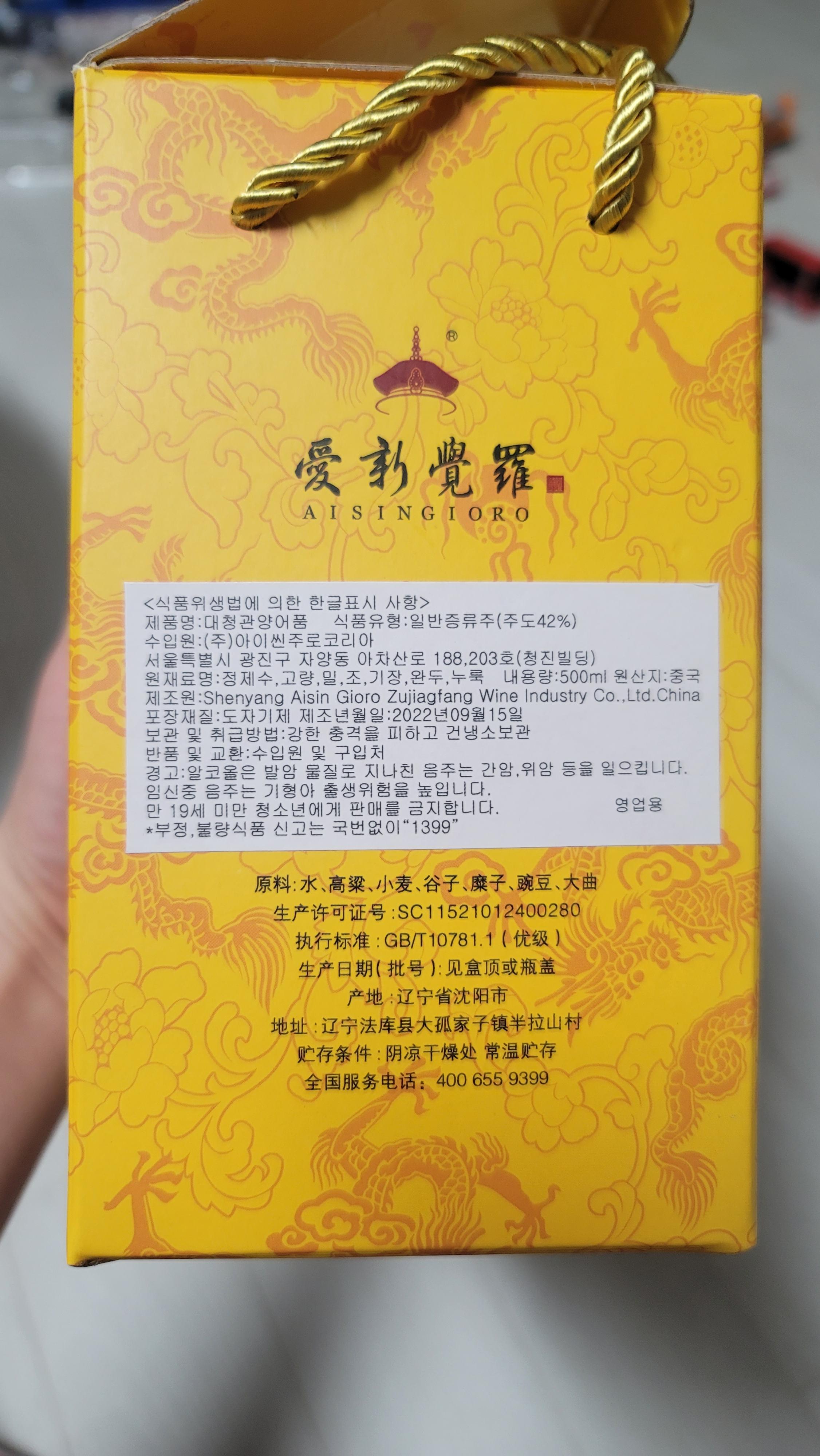 '대청관양'은 청나라 황제가 신하에게 하사하는 술이라는 뜻으로, 큰 전투에서 공을 세우는 등 국가에 공헌한 신하에게 내리는 축하주였다고 합니다. 38도짜리도 있는데, 저는 이번에 42도짜리를 마셔 봤습니다. 병 자체가 연태고량보다 훨씬 고급져서 '이거 이렇게 가볍게 마셔도 되나' 싶었지만, 가격대는 그렇게 부담스럽지 않은 3만 원대입니다. 용량은 500ml이지만, 고량주답게 도수가 42도라서 결코 적은 양이 아닙니다. 패키지에 손잡이가 달려있어서 선물하기에도 너무 좋습니다!