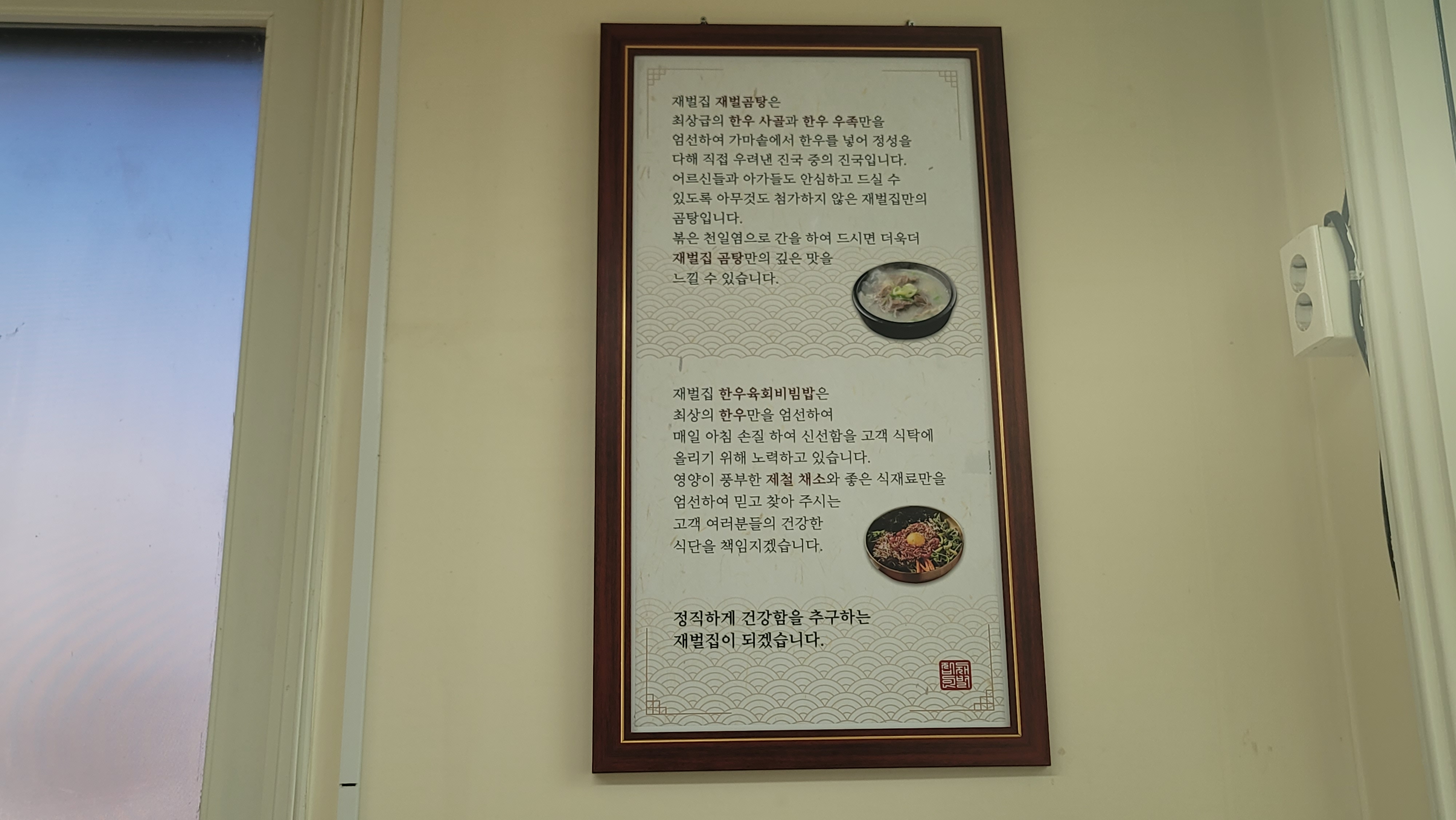 사진에 나와있듯 메뉴 소개 액자에는 재벌곰탕, 육회비빔밥만 되어있다는 점, 에어비앤비 호스트 추천 메뉴도 곰탕과 육회비빔밥이었다는 점을 간과한 탓이었을까요..? 엄청난 후폭풍을 겪게 됩니다.