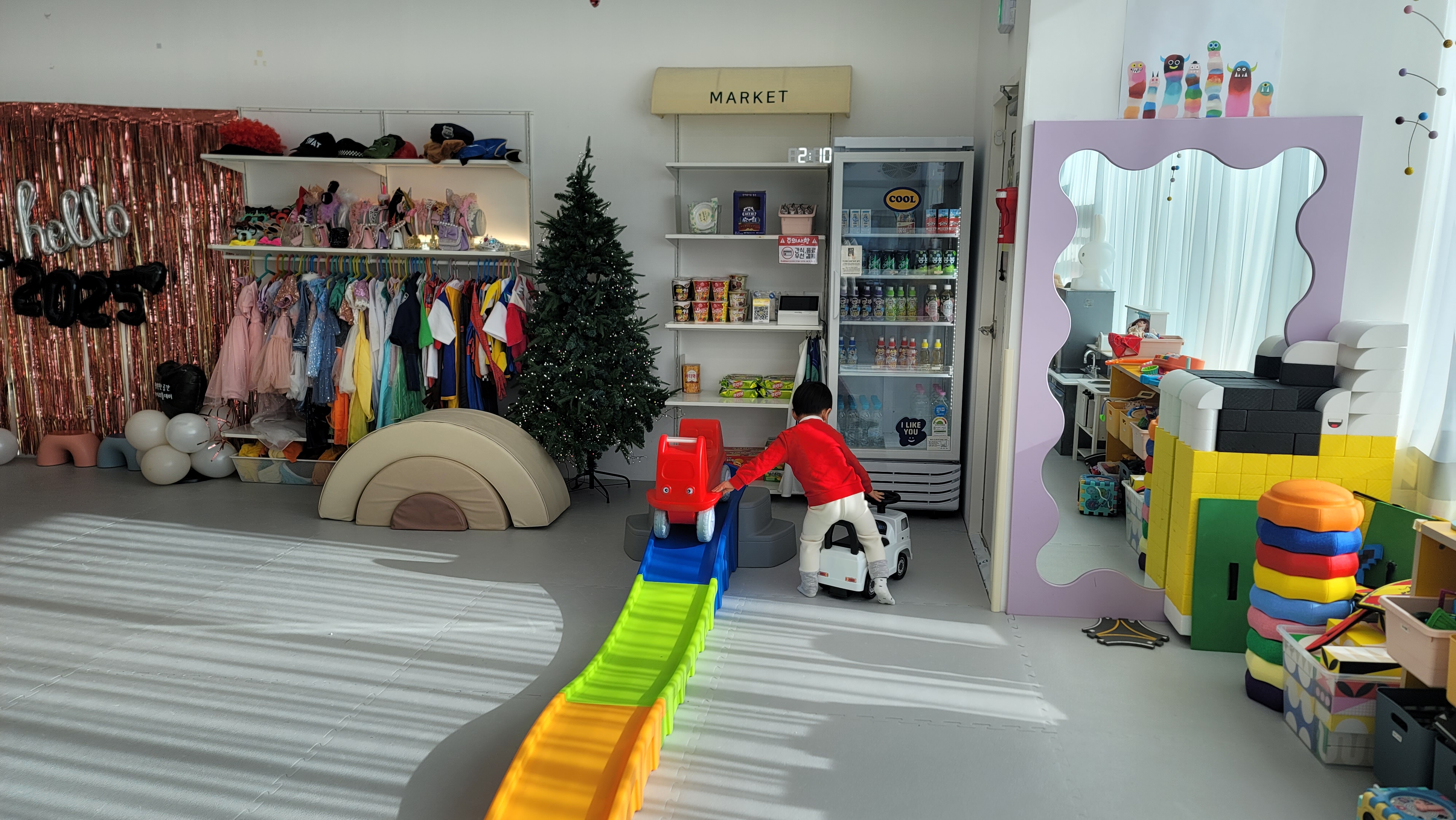 여느 무인 키즈카페에 있는 시설들과 비슷하게 미끄럼틀, 트램펄린, 낚시놀이 등이 합쳐져있는 큰 놀이기구는 물론이고, 다른데보다 아이들 코스튬 종류가 매우 다양해 보였습니다. 자동차 종류도 많았고, 주방놀이, 공구놀이 등 남아/여아 모두가 좋아할 만한 놀잇감들이 골고루 갖춰져 있었어요! 빔프로젝트도 있어서 간단한 영상이나 노래 틀어주는데 이용하시면 좋을것 같아요~